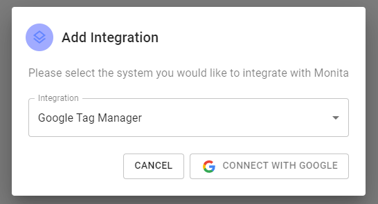 - Select Google Tag Manager and press ‘Connect with Google’